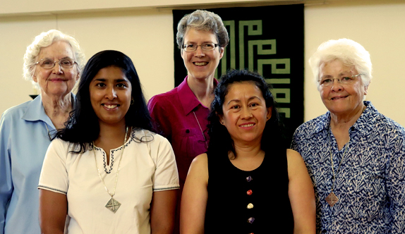 Sisters Joanne Kollasch, Rosy, Kandathil, Lynne Smith, Novice Paz Vital, and SIster Mary David Walgenbach (l-r) – photo by Sandy Wojtal-Weber